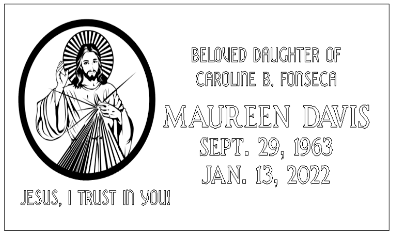 Maureen Davis passed away January 13, 2022. Because of when this took place many were not able to attend and many did not hear about Maureen’s passing at all. Father Francis Chiawa took care of making her burial possible. The only thing that was not attended to was a beveled marker for her gave site.